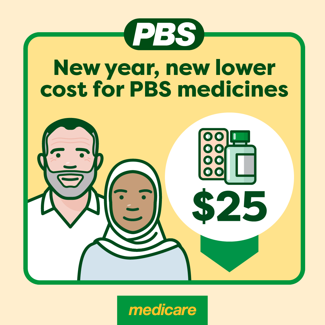 Download and share this tile on your social media channels to help raise awareness about lower costs for PBS medicines and how Australians can save on their PBS prescriptions.