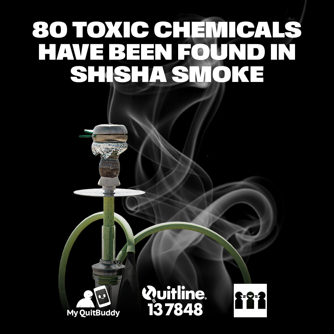 Scroll down to access downloads and media. 80 toxic chemicals have been found in shisha smoke – social media tile [JPEG - 353 KB] About this resource Publication date: 25 February 2026 Publication type: Digital image Audience: General public Language: English Tags: Smoking, vaping and tobacco