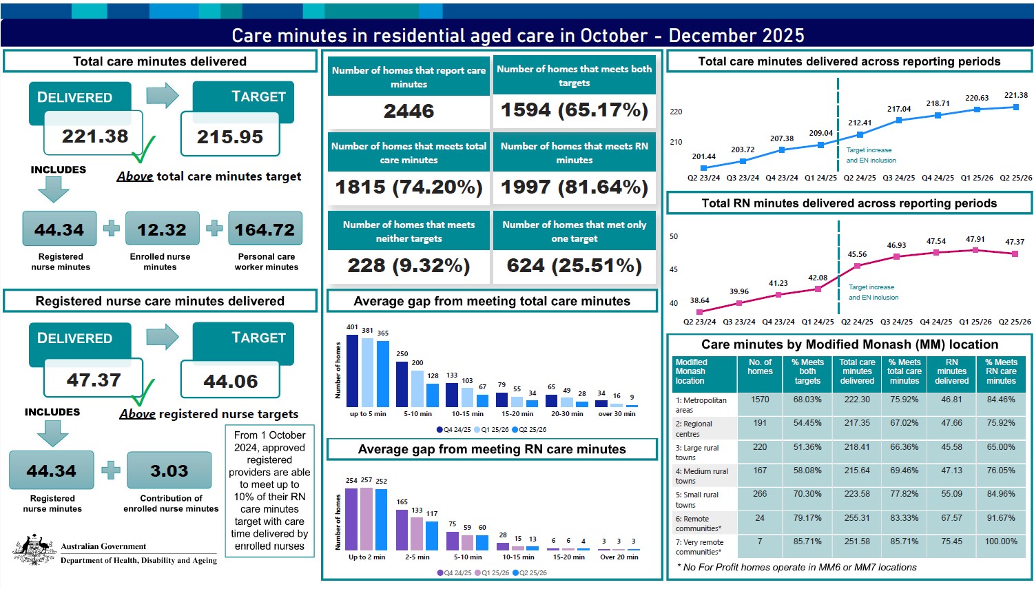 See the Care minutes in residential aged care dashboard for an overview of the amount of care minutes reported across the sector.
