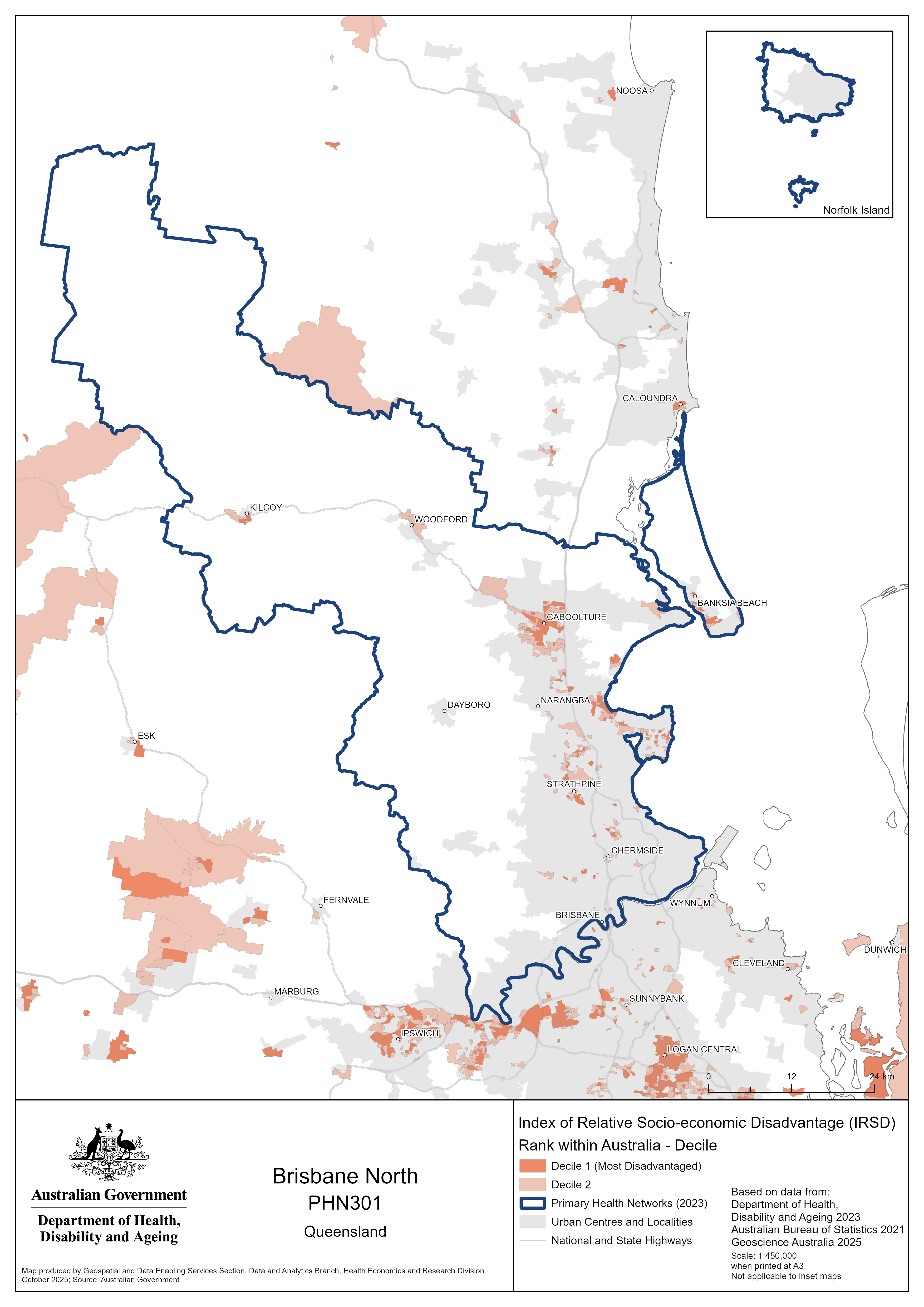 Brisbane North (Qld) PHN map – socioeconomic disadvantage
