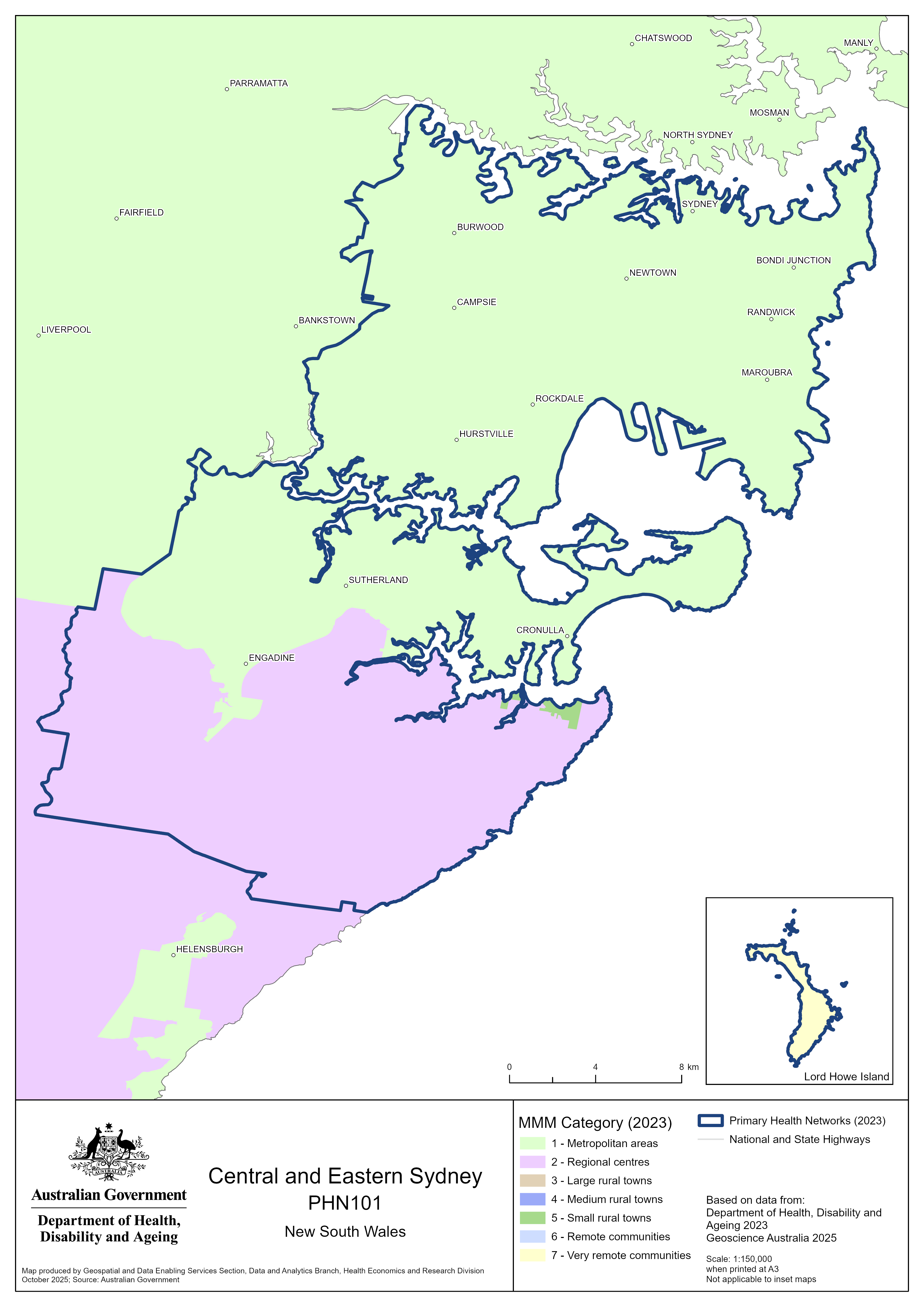 Central and Eastern Sydney (NSW) PHN map – MMM remoteness area