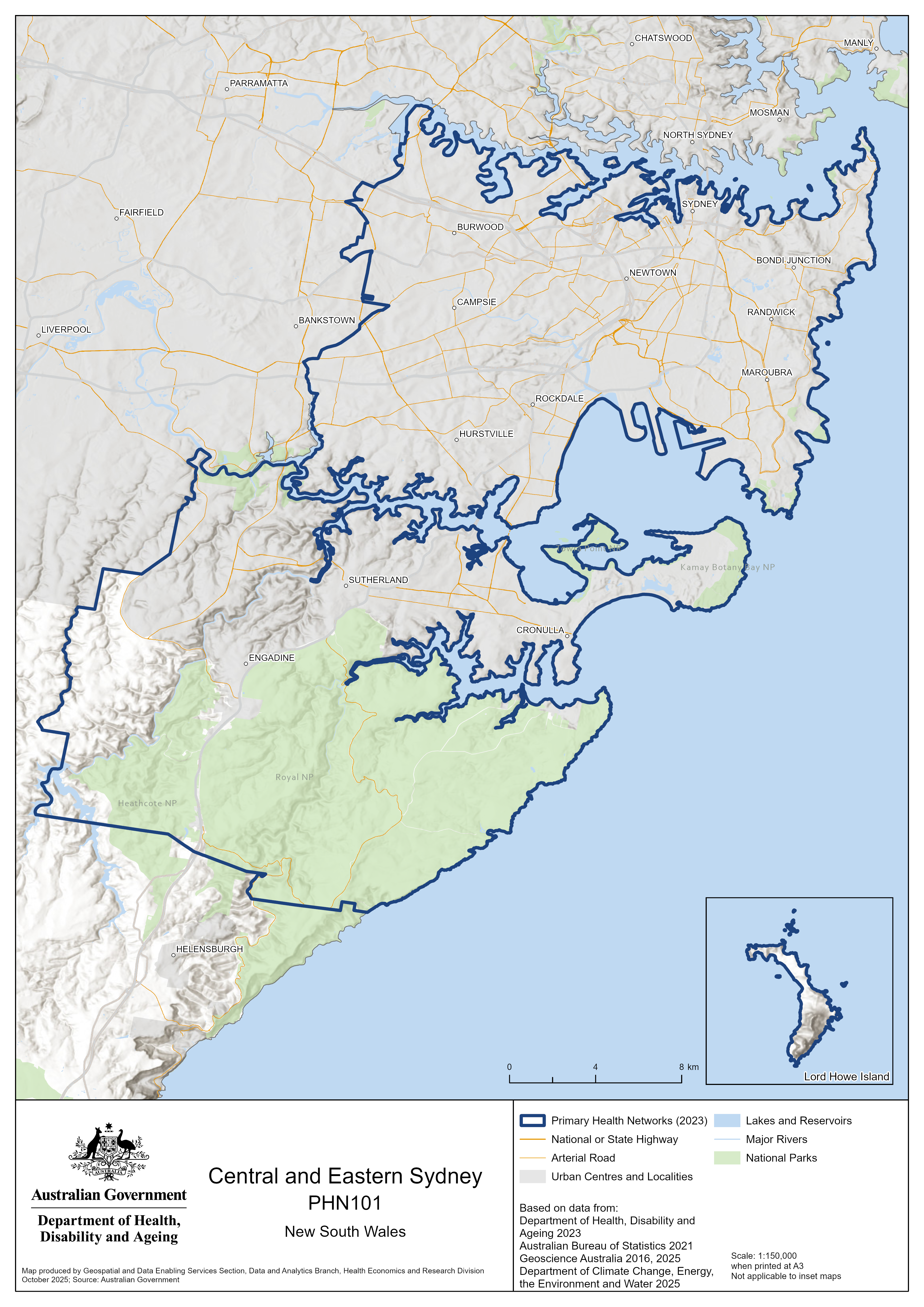 Central and Eastern Sydney (NSW) PHN map – topographic
