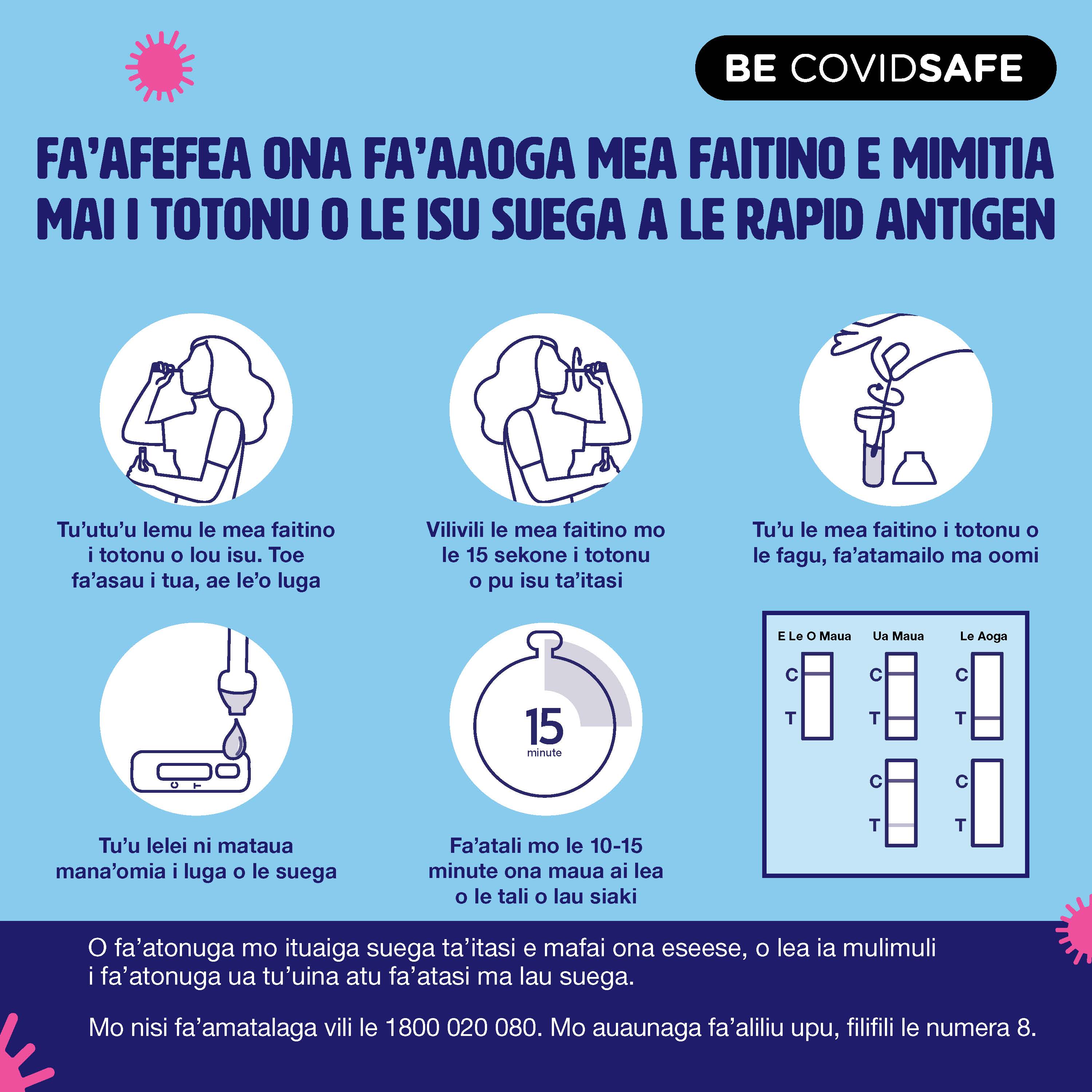 Coronavirus (COVID-19) – Social – FA'AFEFEA ONA FA'AAOGA MEA FAITINO E MIMITIA MAI I TOTONU O LE ISU SUEGA A LE RAPID ANTIGEN (Nasal swab RAT)