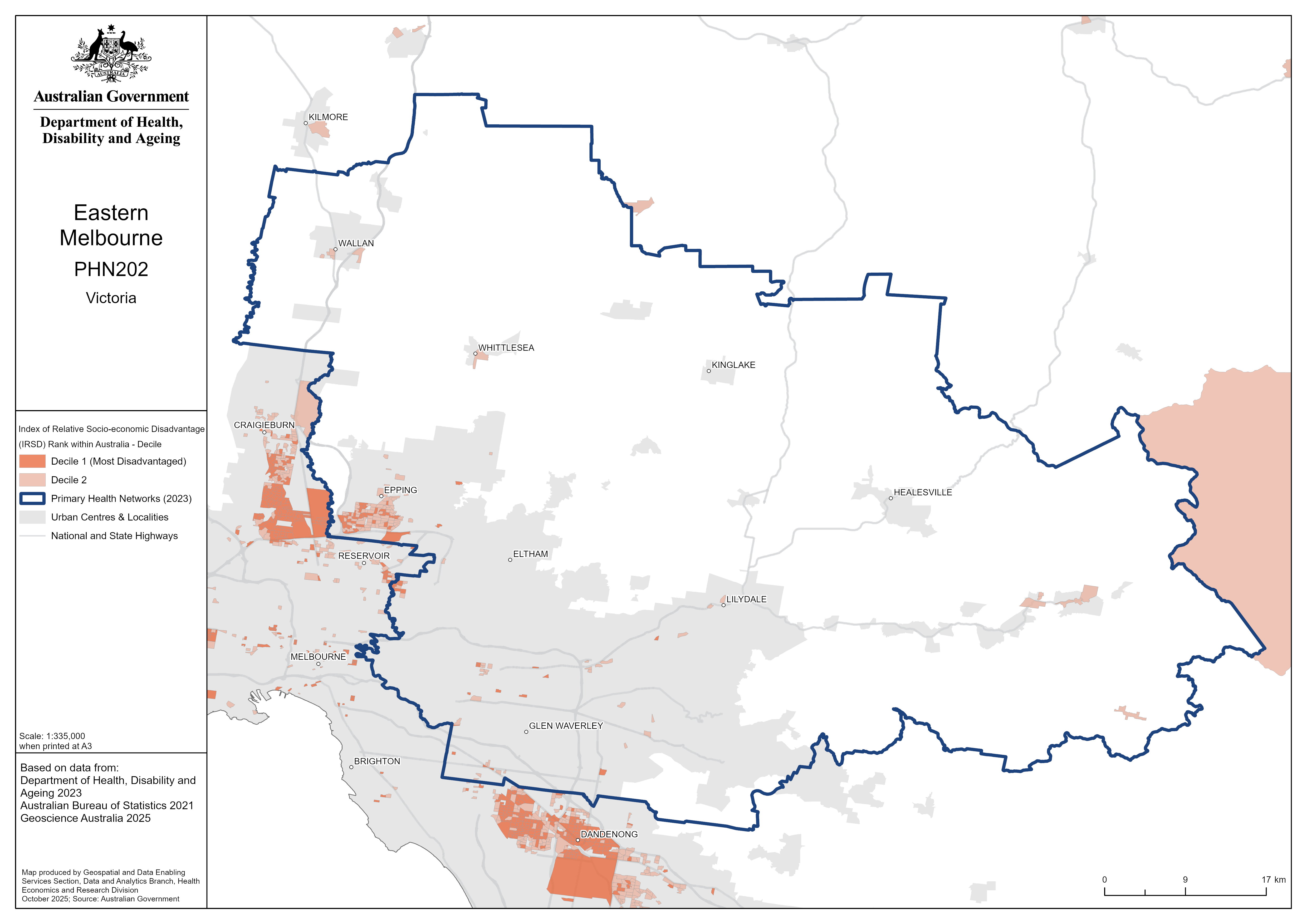 Eastern Melbourne (Vic) PHN map – socioeconomic disadvantage