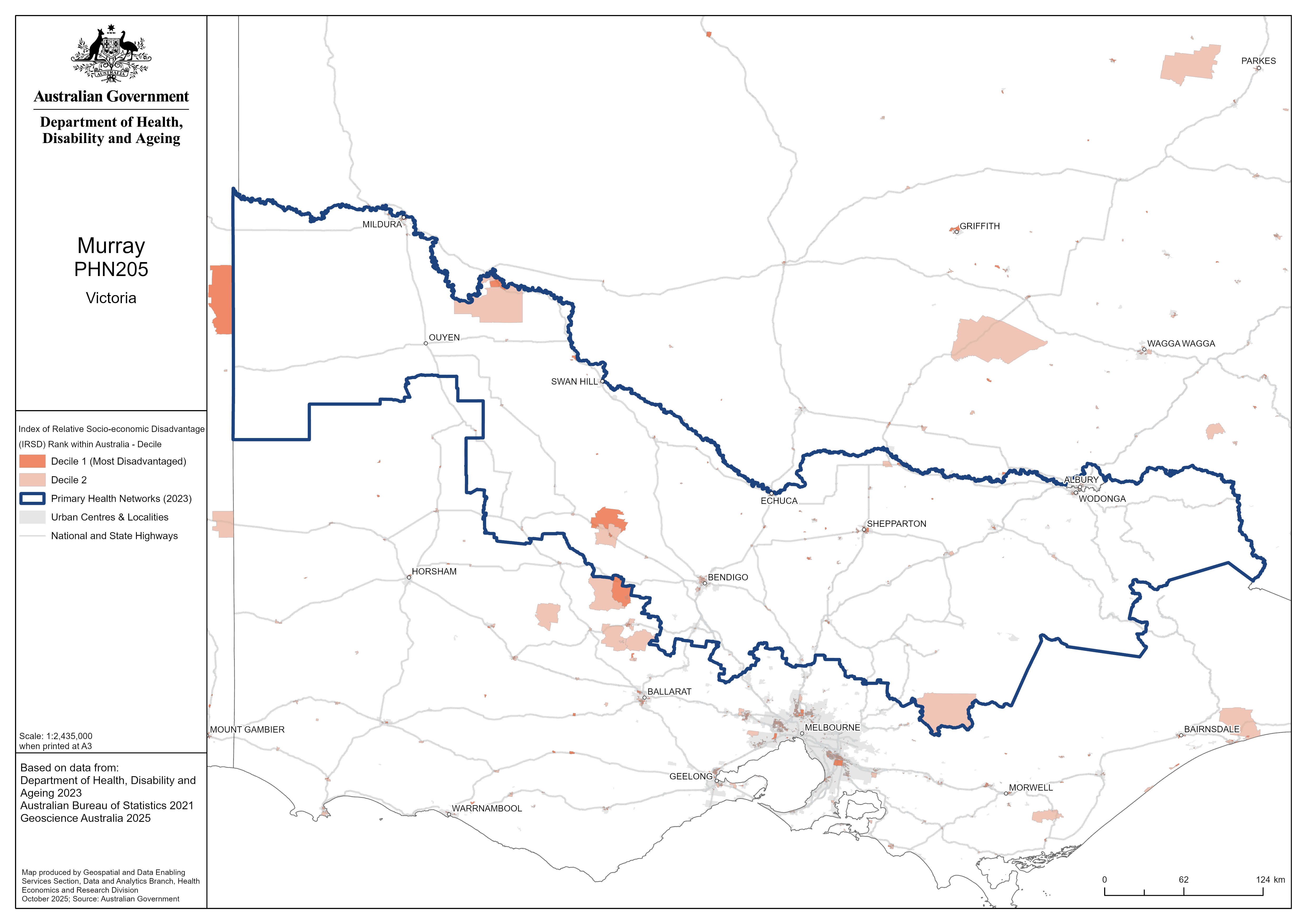 Murray (Vic) PHN map – socioeconomic disadvantage