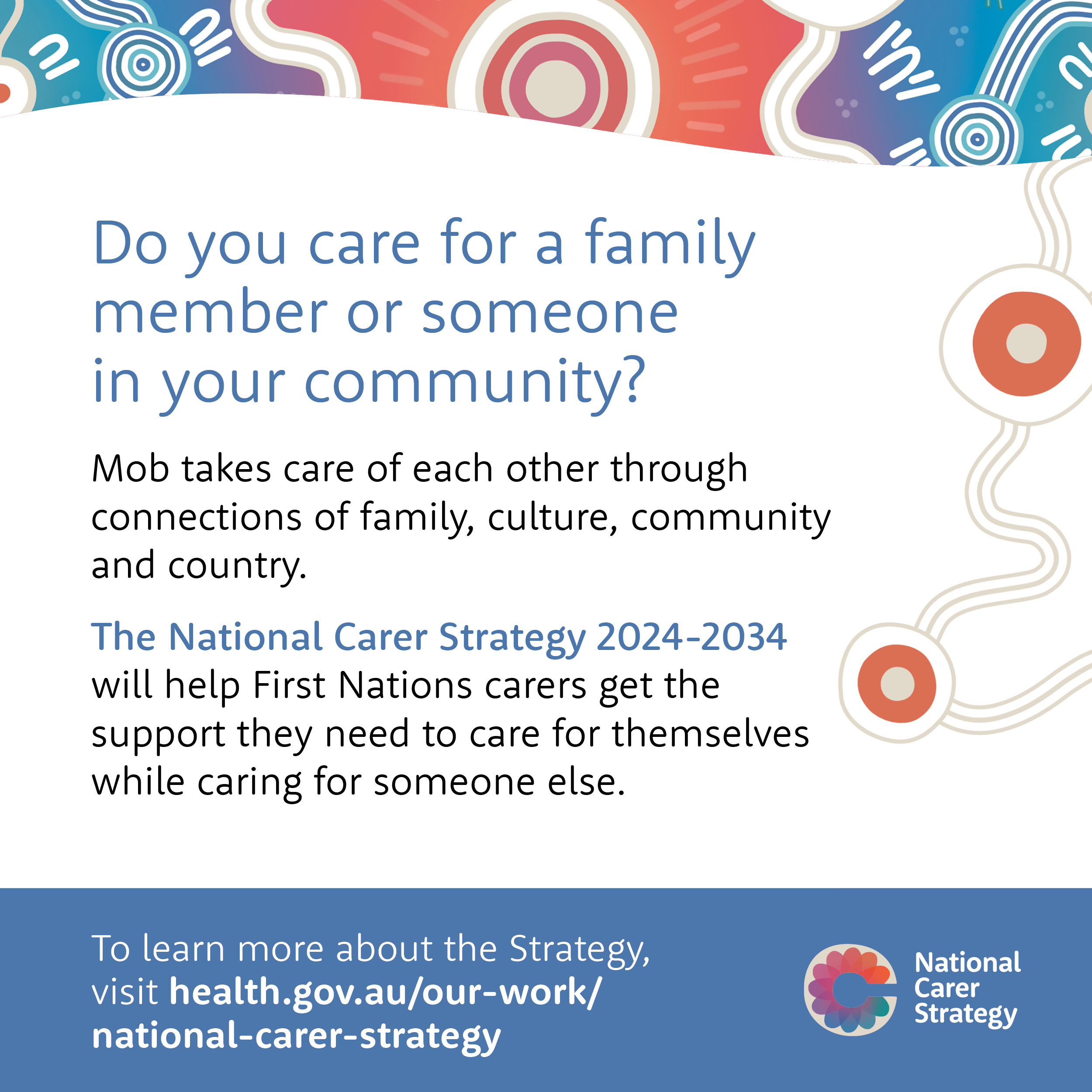 Social media tiles you can use to promote the National Carer Strategy with First Nations people.