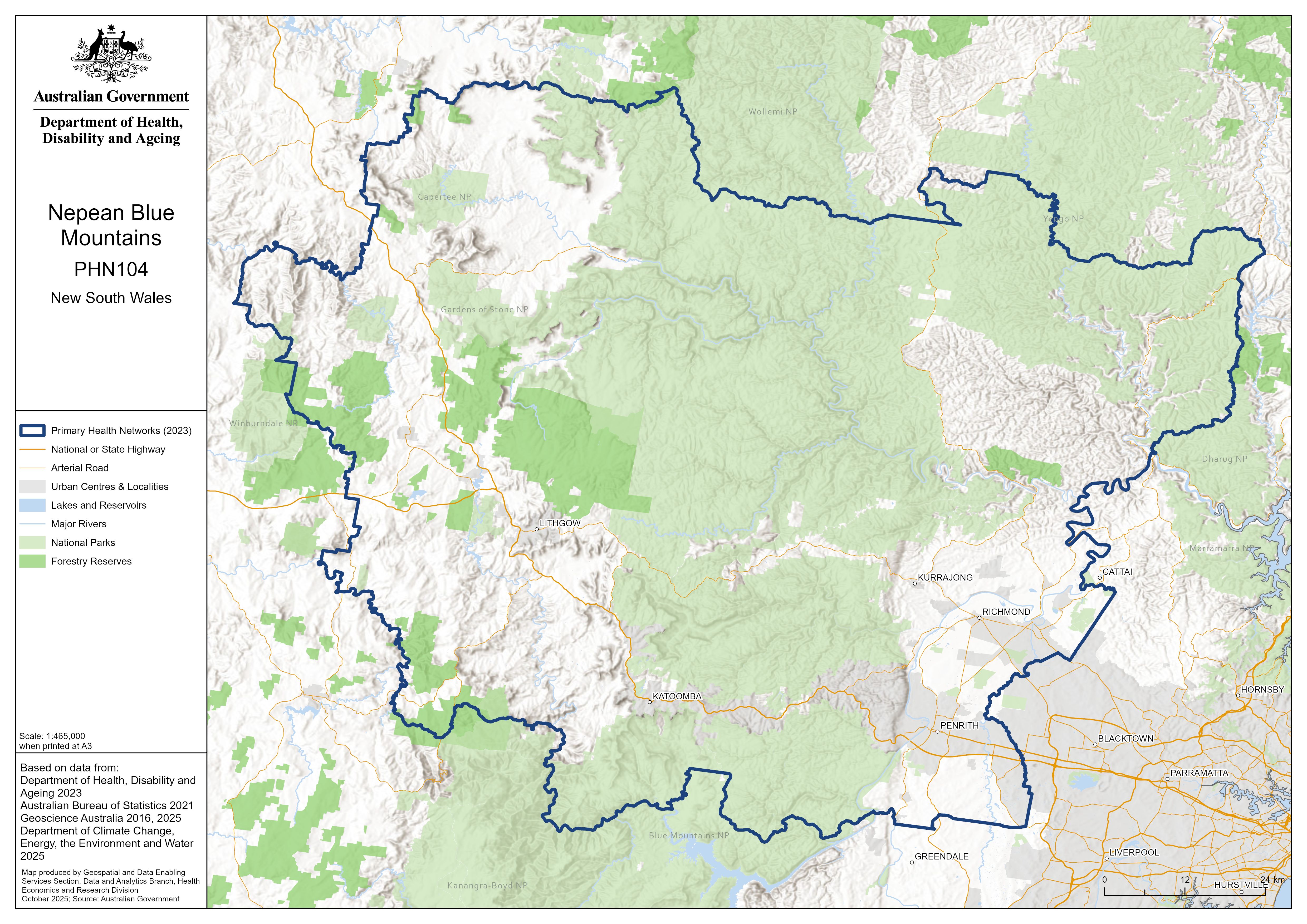 Nepean Blue Mountains (NSW) PHN map – topographic