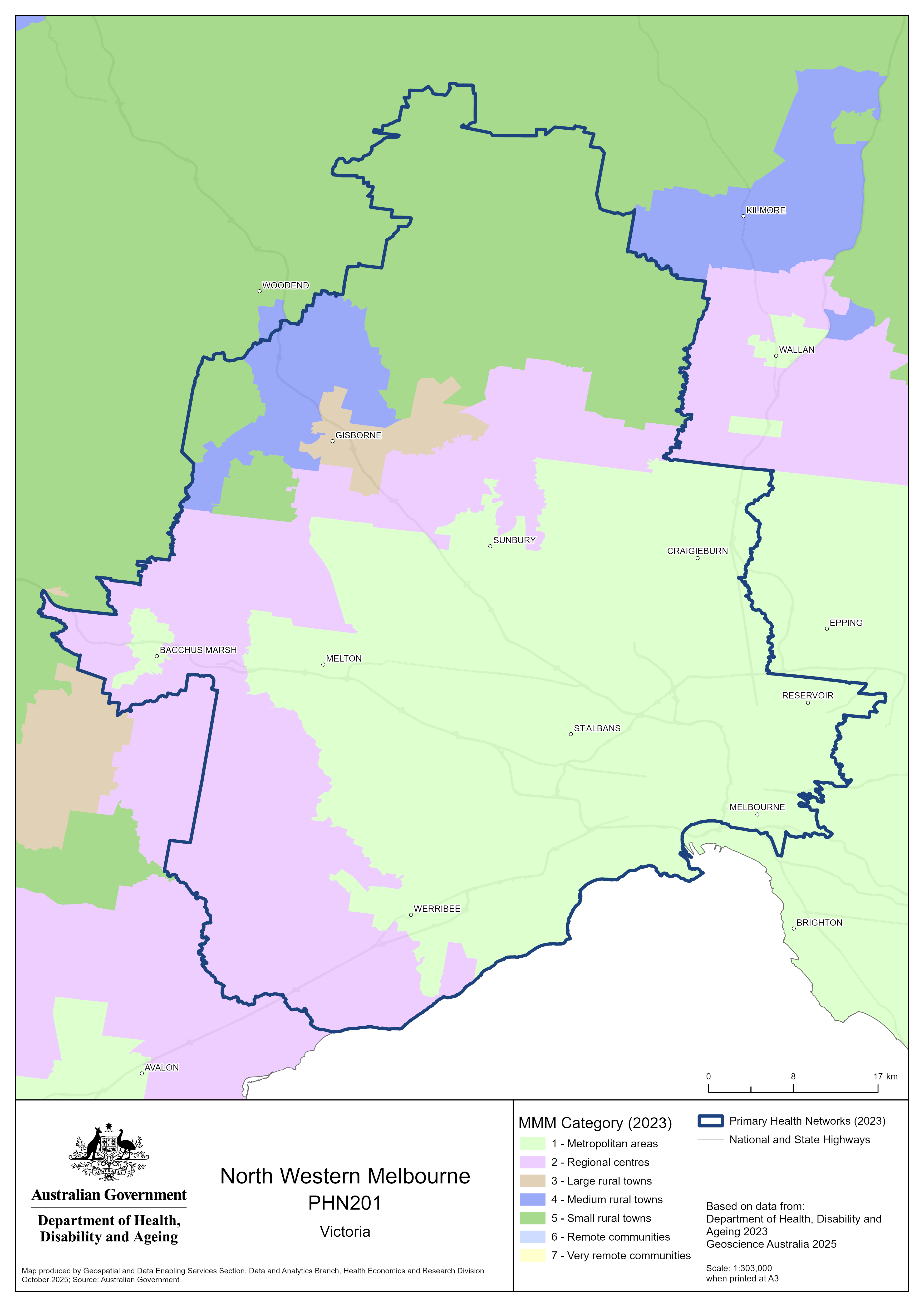 North Western Melbourne (Vic) PHN map – MMM remoteness area