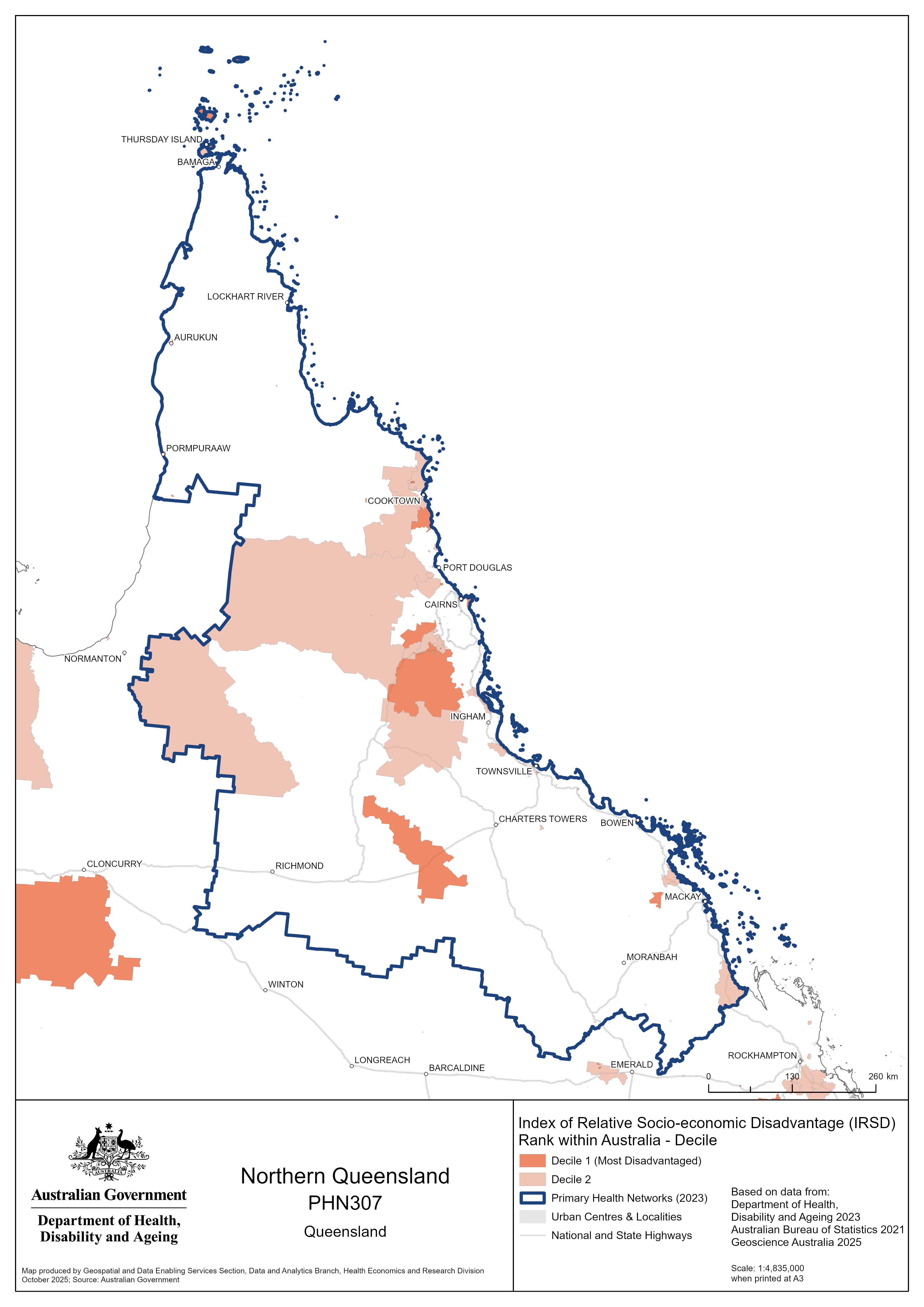 The Australian Bureau of Statistics ranks socioeconomic advantage and disadvantage based on the Socio-economic Index for Areas (SEIFA). This map shows only the most disadvantaged areas.