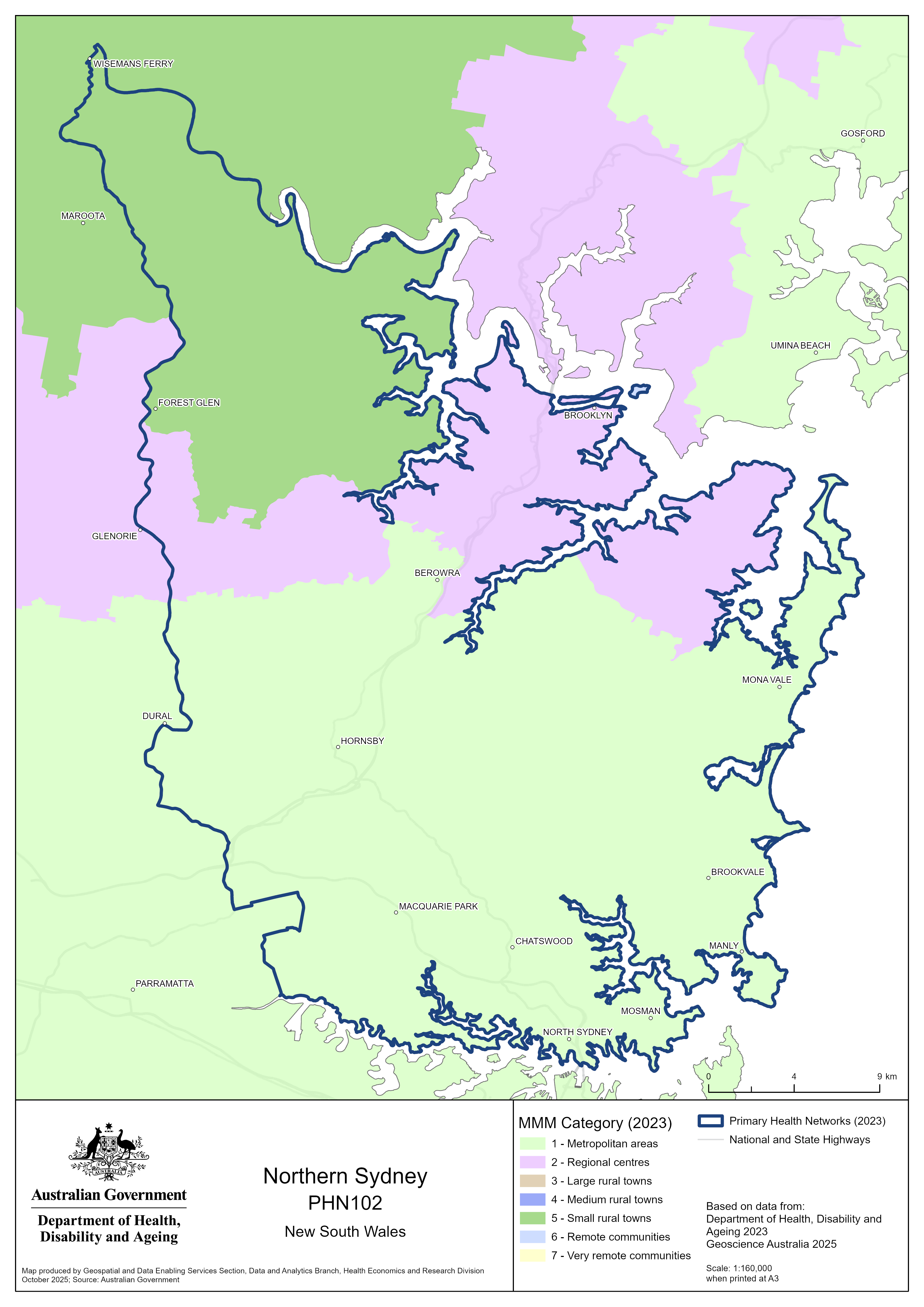 Northern Sydney (NSW) PHN map – MMM remoteness area