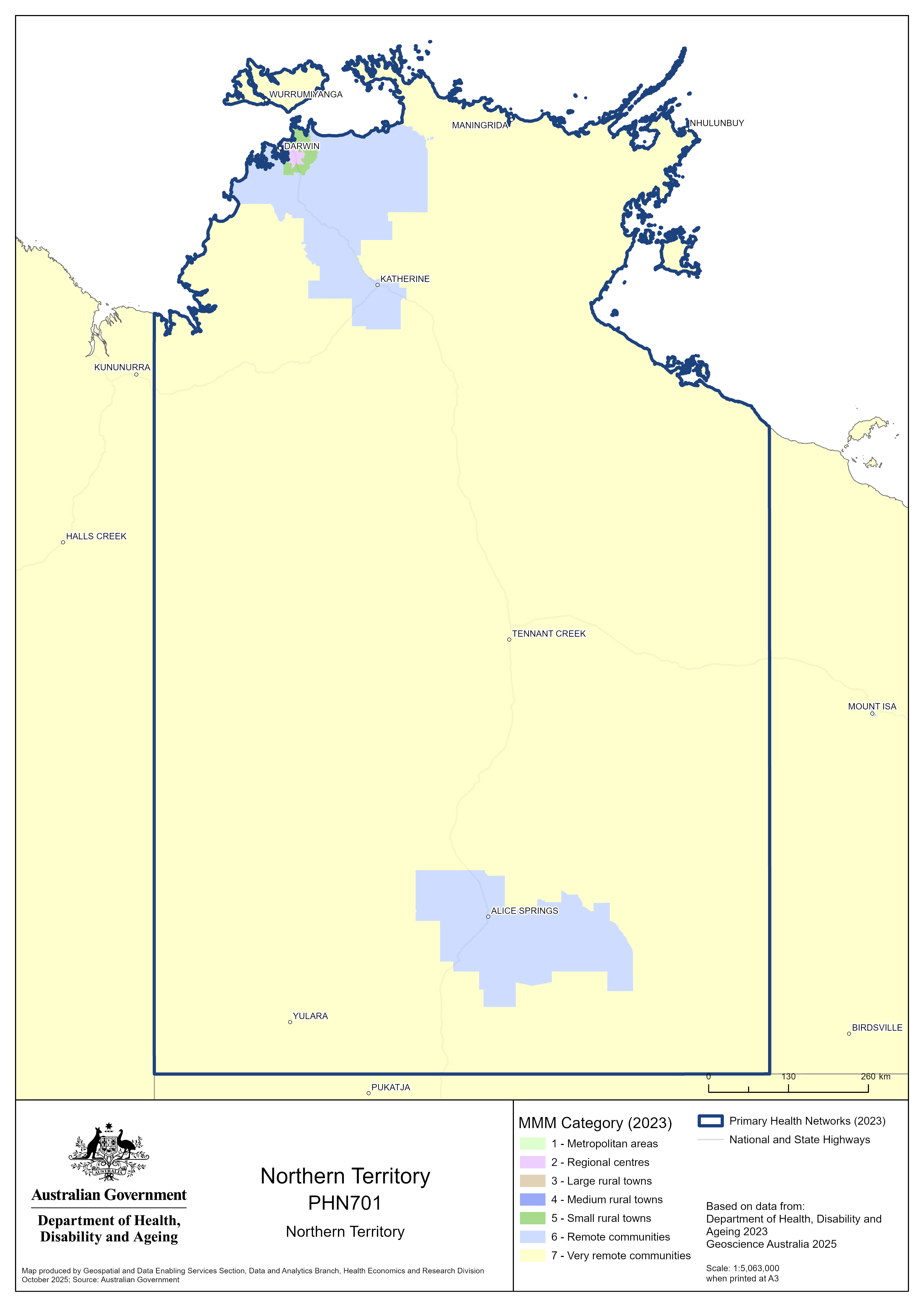 NT PHN map – Modified Monash Model (MMM) remoteness area