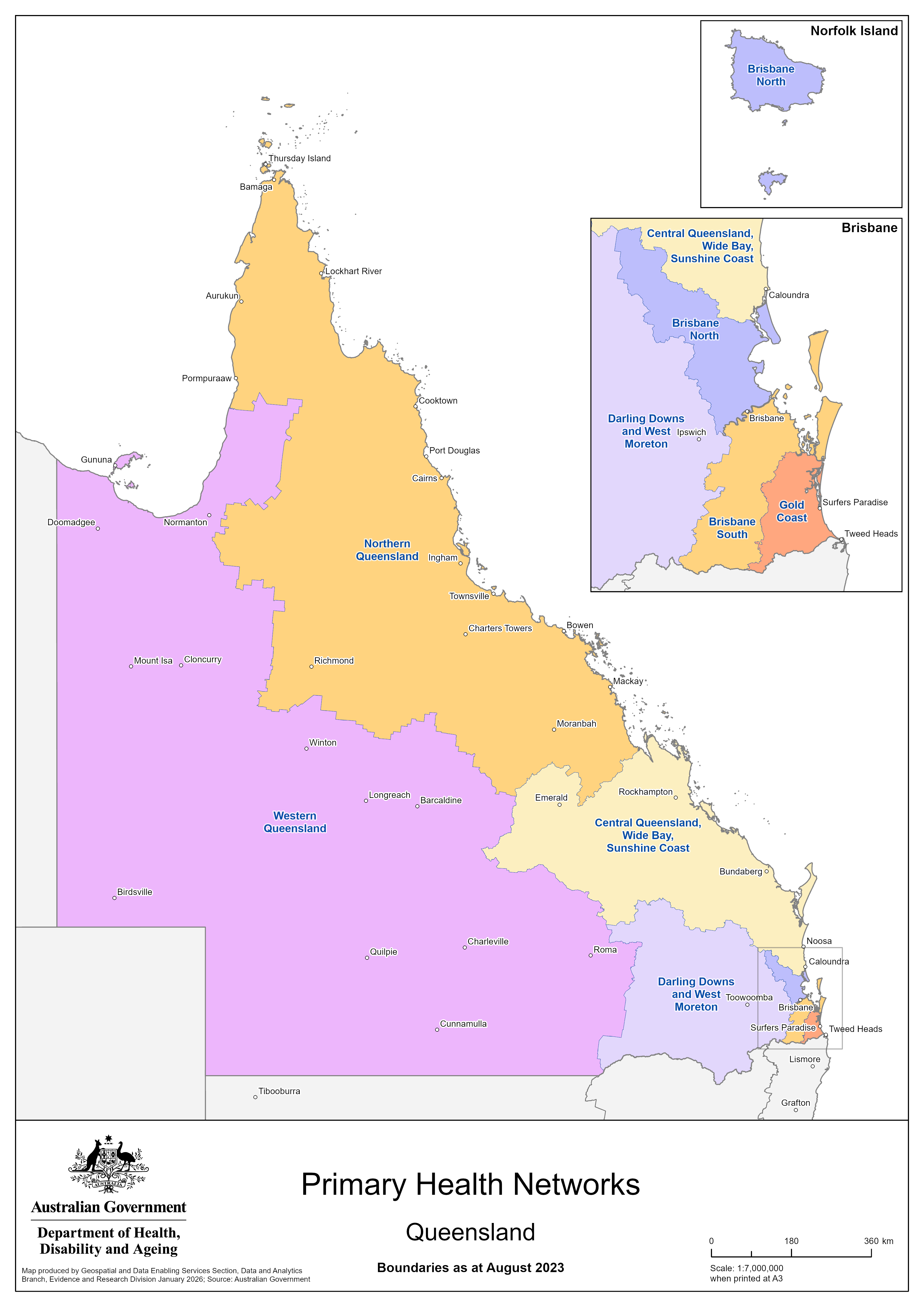 These maps show the boundaries for Queensland Primary Health Networks (PHNs) across the whole state and in more detail in metropolitan areas only.