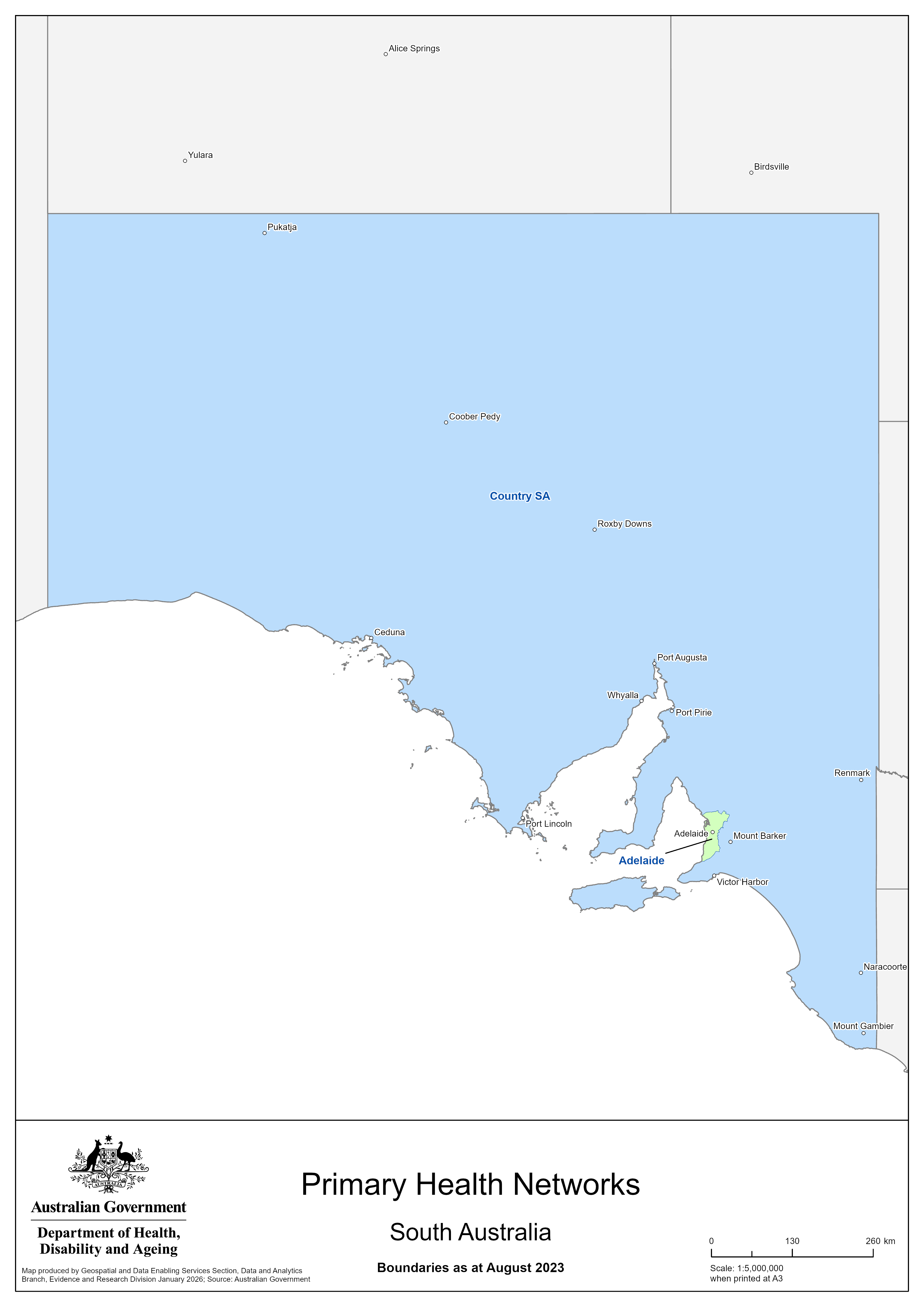 These maps show the boundaries for South Australia Primary Health Networks (PHNs) across the whole state and in more detail in metropolitan areas only.