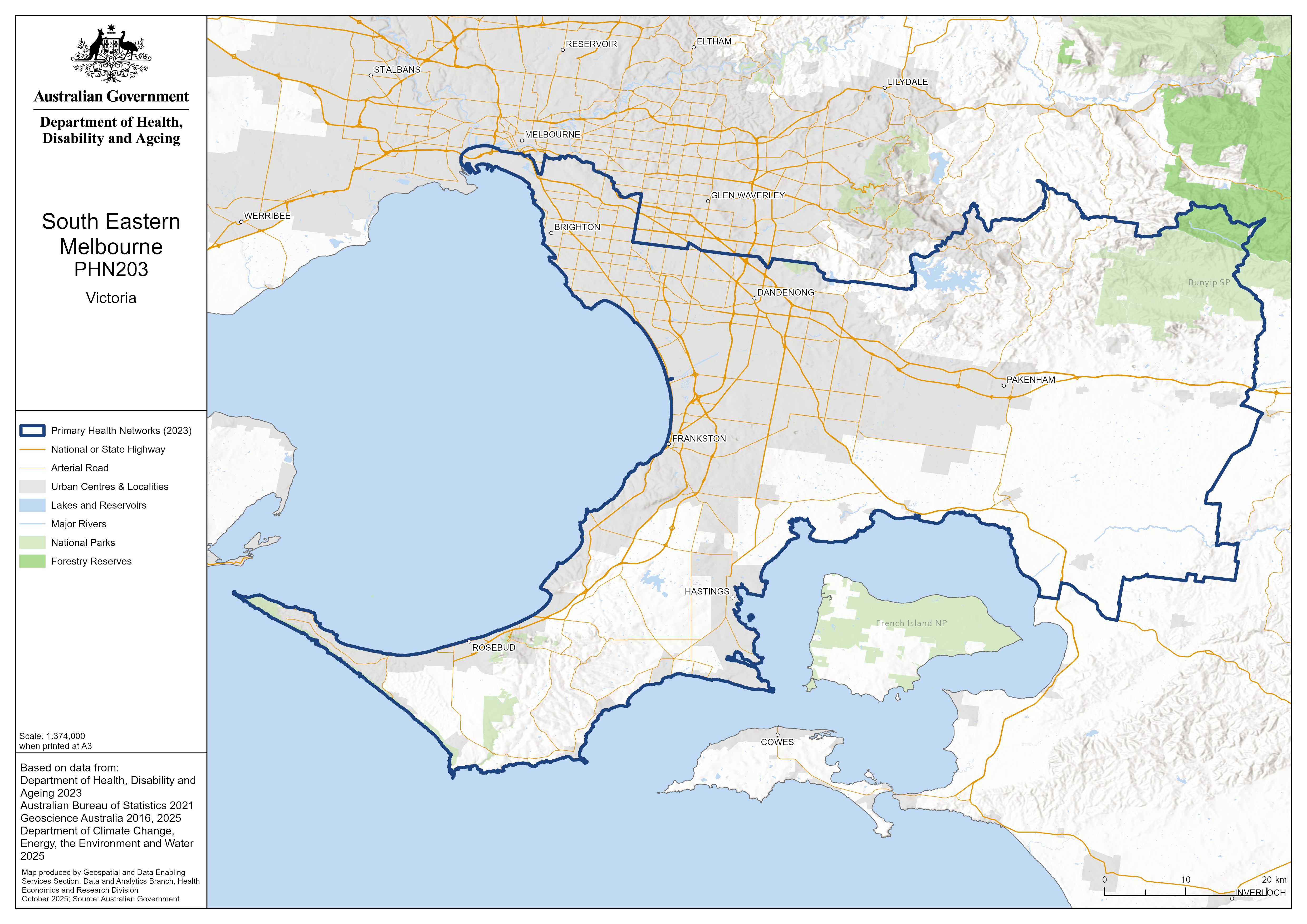 South Eastern Melbourne (Vic) PHN map – topographic