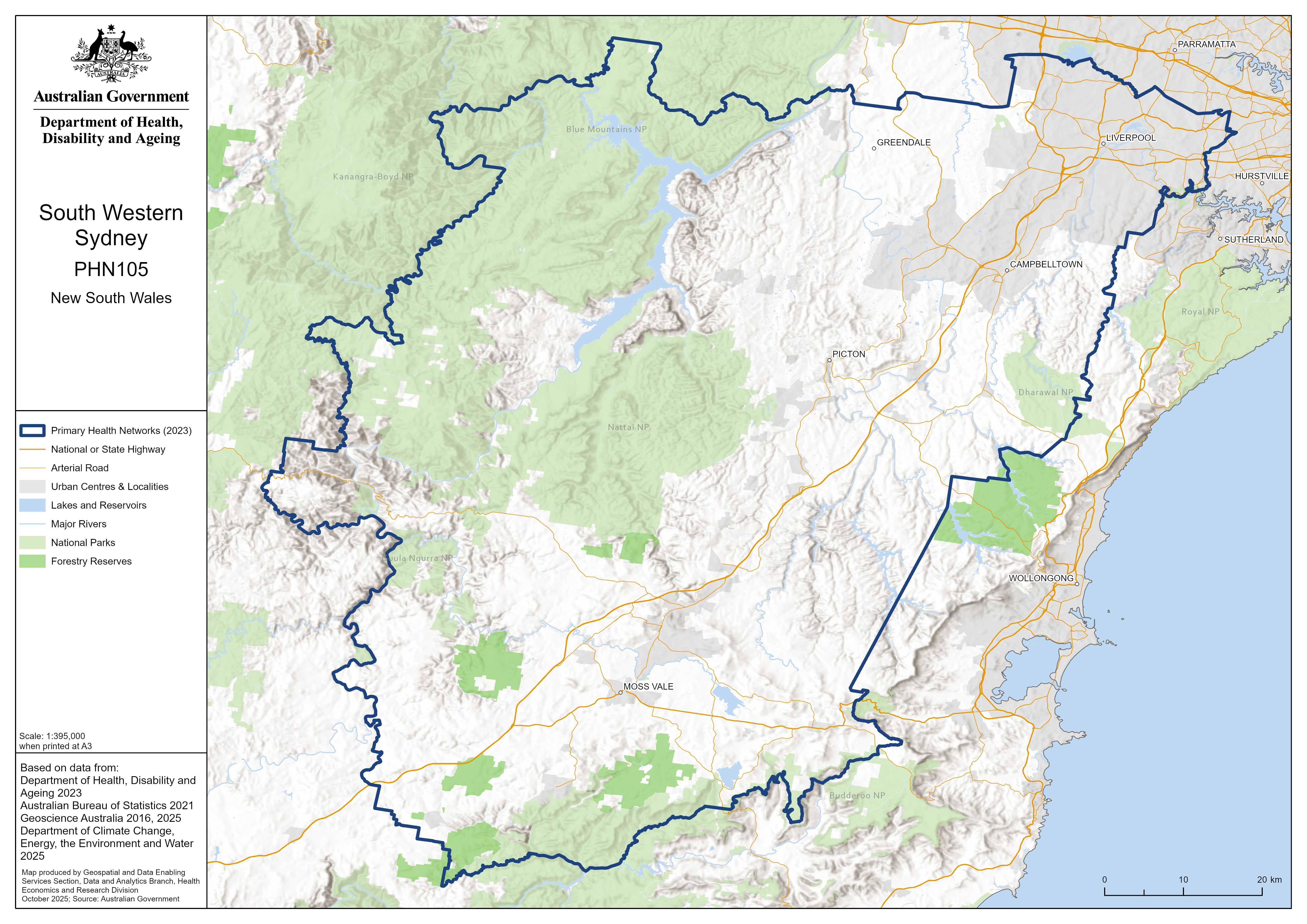 South Western Sydney (NSW) PHN map – topographic